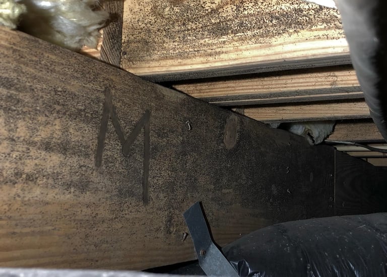 Subfloor moisture and hazardous black mold buildup on joists and insulation — poor ventilation and ground dampness lead to this hidden hazard. Our probes and thermal checks identify these before they cause structural issues.